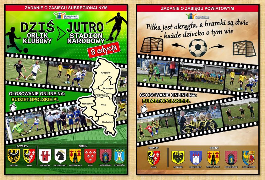 Ruszyło głosowanie 8 edycji Marszałkowskiego Budżetu Obywatelskiego, które potrwa do 30 września. W tym czasie można oddać głosy na 2 zadania, które mogą wesprzeć i doposażyć kluby sportowe w naszej gminie. Zadanie o zasięgu subregionalnym "Dziś orlik klubowy, jutro Stadion Narodowy - 8 edycja". Zadanie o zasięgu powiatowym ,,Piłka jest okrągła, a bramki są dwie - każde dziecko o tym wie". Wspólnymi siłami możemy zdziałać więcej!