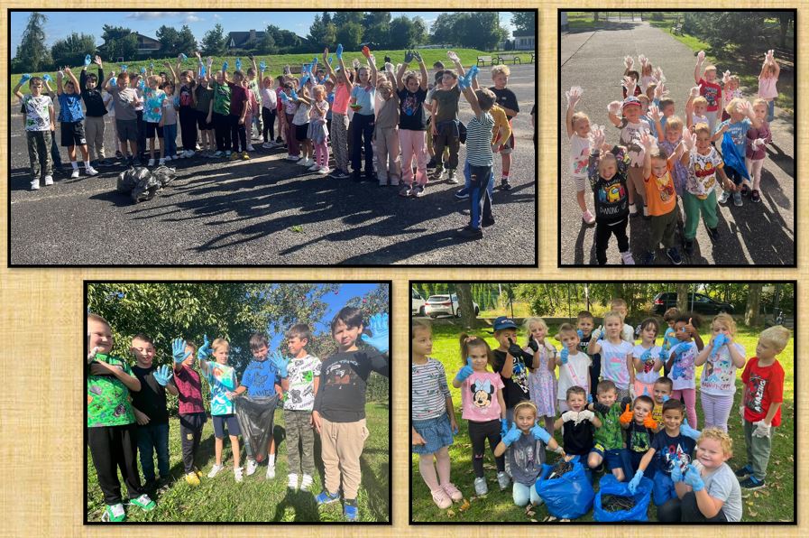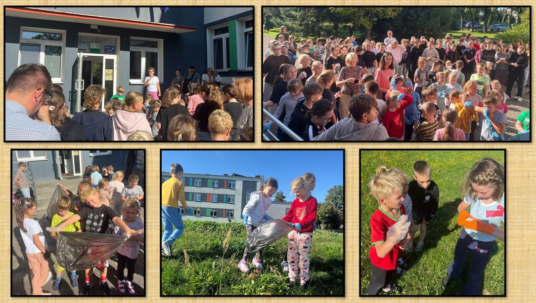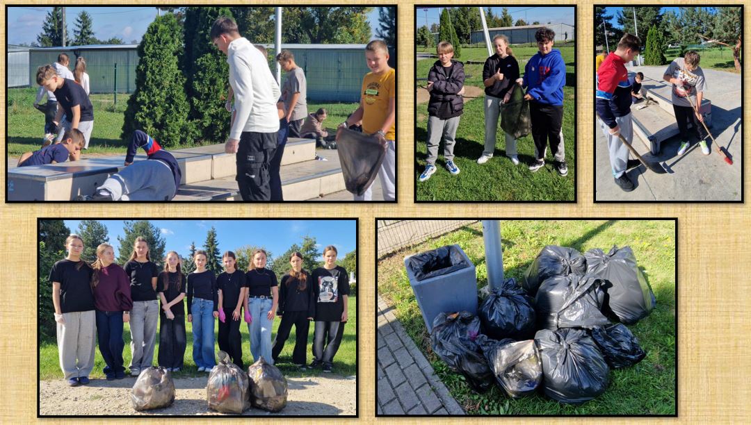 ,,W naturę z kulturą”-pod takim hasłem przebiegała tegoroczna akcja Sprzątania Świata- Polska 2025. Dzisiejsza akcja, to zdecydowanie więcej, niż tylko dobrze wszystkim znane wrześniowe sprzątania. To przede wszystkim ciągłe działania edukacyjne, podejmowane przez uczestników w całej Polsce – szkoły i przedszkola, które tłumnie każdego roku biorą udział w akcji. Uświadamianie uczniom potrzeby ochrony środowiska, w którym żyjemy, rozwijanie poczucia odpowiedzialności za jego stan, a także zrozumienie, jak ważne jest oszczędne gospodarowanie. W dzisiejszych czasach przestrzeganie prawidłowych zasad segregowania odpadów jest niezbędne, w celu zachowania wielu ekosystemów na naszej planecie. Z tego powodu od najmłodszych lat dzieci i młodzież muszą być edukowane w tym zakresie. Poza prawidłową segregacją odpadów należy wpajać im zasady recyklingu, ponieważ zasoby wielu pierwiastków, minerałów i surowców na Ziemi są bliskie wyczerpaniu. I w naszej szkole przy tej okazji także działo się!Uczniowie klas 1-8 oraz grupa 3-4 Latków i grupa 5-6 latków wyposażeni w rękawice i worki na śmieci, ochoczo zabrali się za porządkowanie terenu wokół szkoły oraz skateparku.