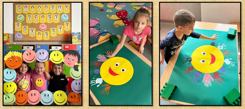 3 października przedszkolaki obchodziły wyjątkowe święto – Światowy Dzień Uśmiechu. Symbolem tego dnia jest żółta uśmiechnięta buźka. Dzieci z szerokim uśmiechem wchodziły do sali, który był „biletem wstępu” w tym radosnym dniu. Były rozmowy o emocjach i wesołe opowieści. Przedszkolaki wykonały piękną pracę plastyczną, lecz największą radość sprawiła im sesja fotograficzna w fotobudce. Wszystkim przedszkolakom, życzymy, aby uśmiech gościł na ich twarzach zawsze, nie tylko od święta, bo ,, Kiedy śmieje się dziecko, śmieje się cały świat”