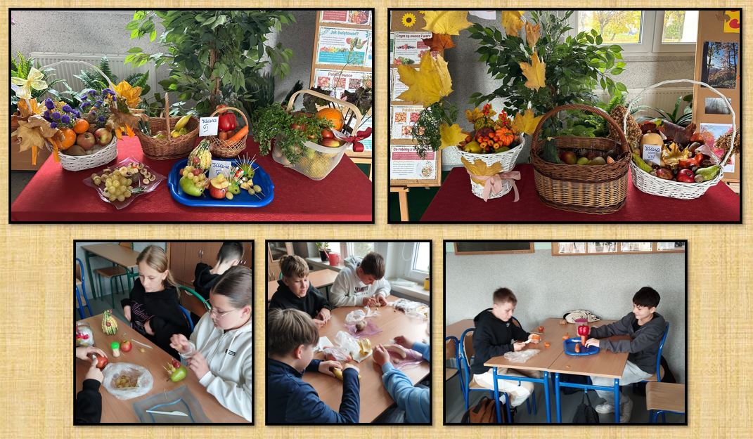 Dnia 27 października br. na godzinie wychowawczej uczniowie klas 4-8 wykonali kosze z "darami jesieni ". Powstały piękne, kolorowe kompozycje z owoców i warzyw , liści, żołędzi , które można podziwiać na szkolnym korytarzu. Dziękuję za zaangażowanie , pomysłowość i wspólną zabawę!