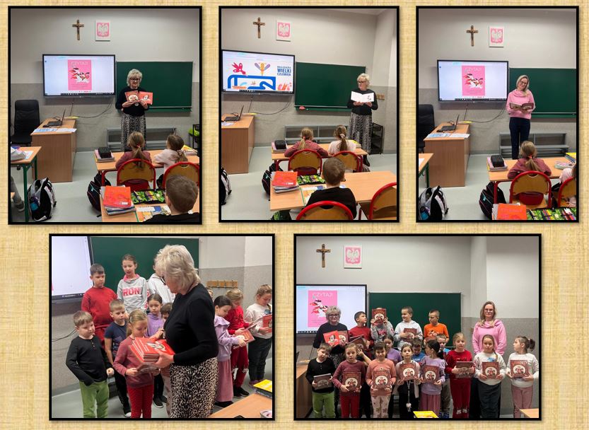 W bieżącym roku szkolnym 2025/2026 uczniowie klasy I przystąpili do kolejnej edycji kampanii „Mała książka – wielki człowiek” zorganizowanej przez Instytut Książki przy Ministerstwie Kultury i Dziedzictwa Narodowego. Celem kampanii jest promocja czytelnictwa wśród dzieci. Każdy uczeń klasy I otrzymał specjalną Wyprawkę Czytelniczą, w skład której wchodzi „Wnuczka antykwariusza”- książka autorstwa cenionej pisarki Justyny Bednarek, opatrzona ilustracjami wybitnej artystki Emilii Dziubak oraz „Kochasz? Czytaj razem z dzieckiem!” – broszura, która jest poradnikiem dla rodziców i opiekunów, mówiącym o korzyściach wynikających ze wspólnego rodzinnego czytania, a także zbiorem rekomendacji wartościowych książek dla pierwszoklasistów.
