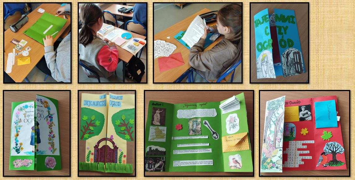 Dnia 20 marca uczniowie klasy piątej na lekcji języka polskiego wykonywali lapbooki poświęcone lekturze pt. "Tajemniczy ogród" F. H. Burnett. Prace te były okazją do rozwijania, utrwalenia znajomości treści książki oraz zaprezentowania własnych pomysłów.