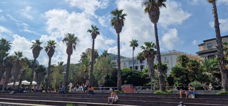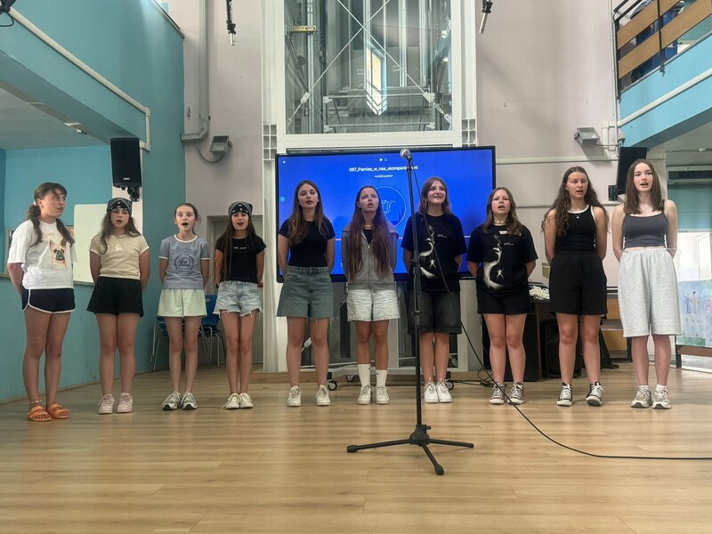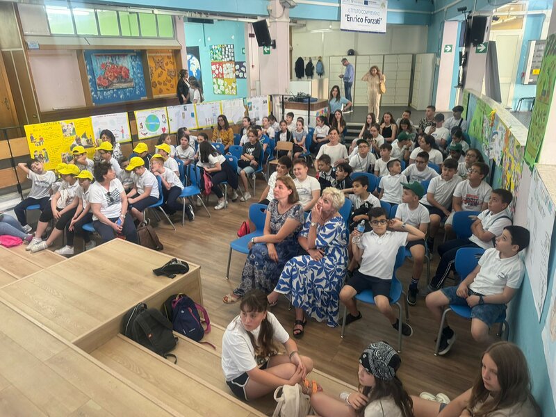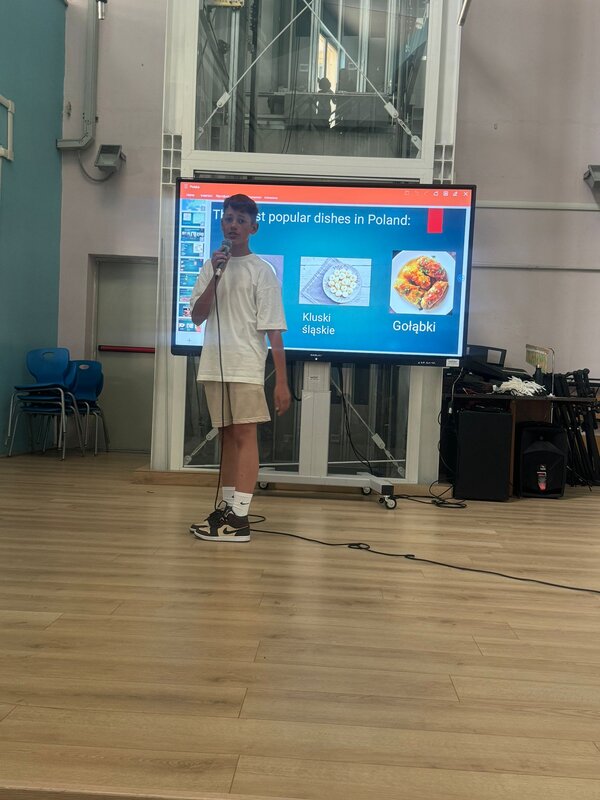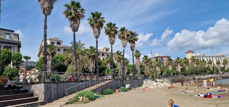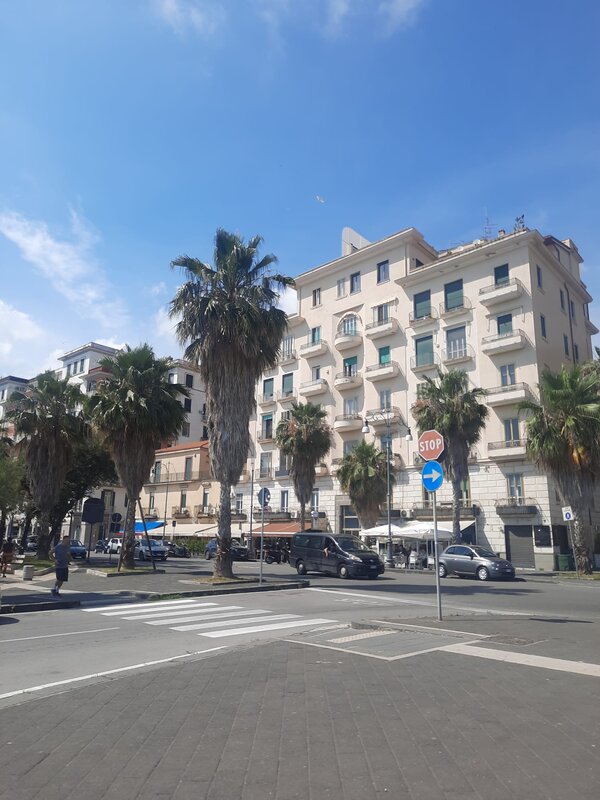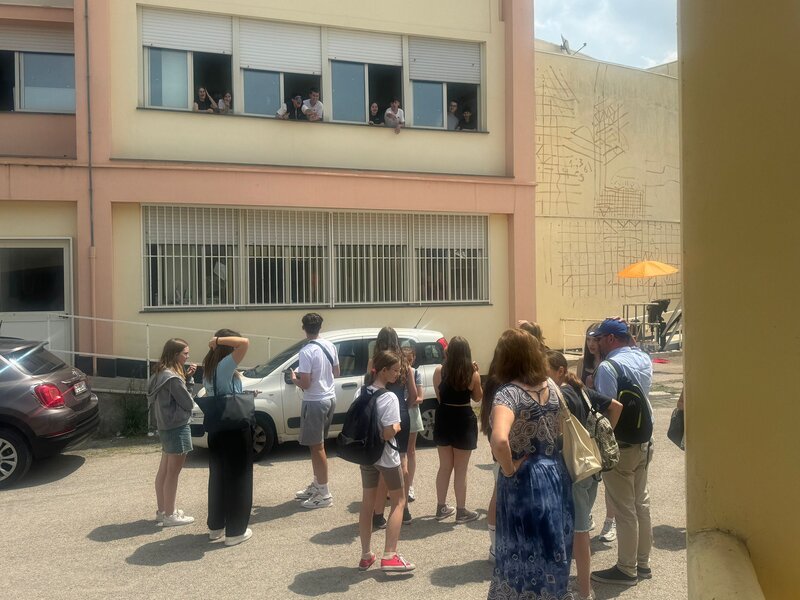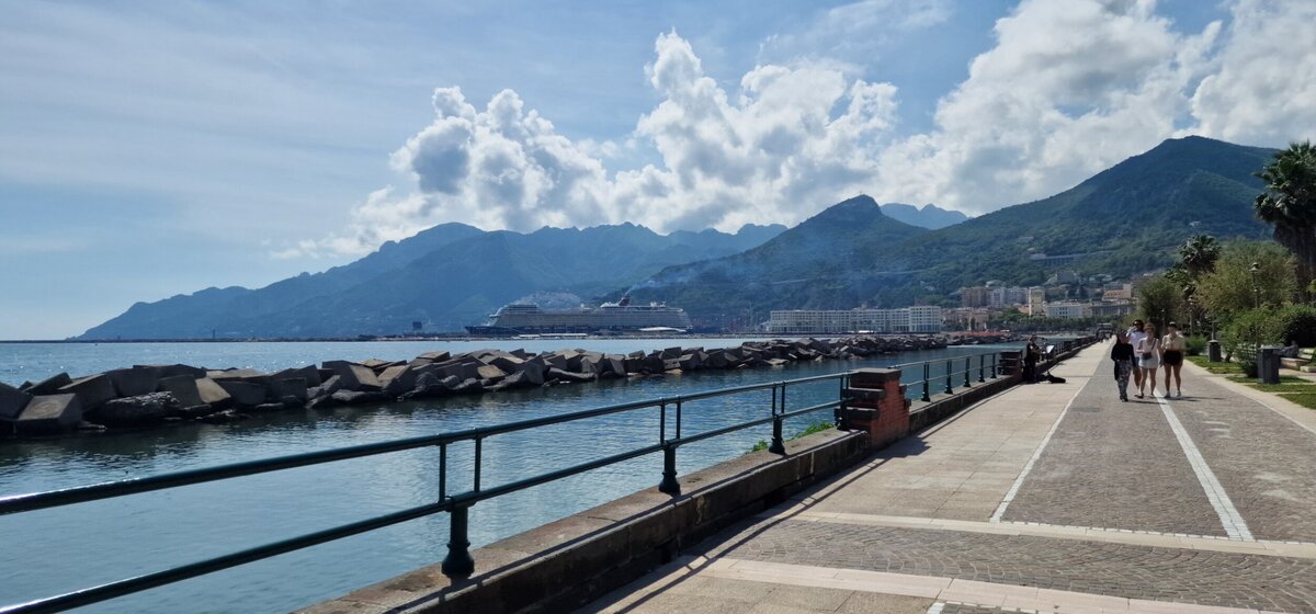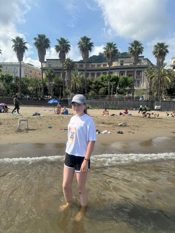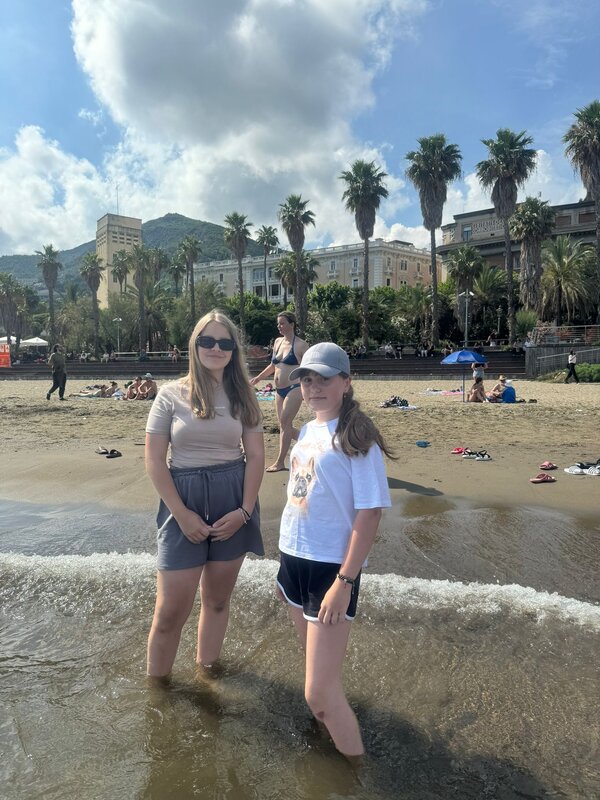 Szóstego dnia - w czwartek - mieliśmy okazję przedstawić naszym kolegom i koleżankom z Włoch ciekawostki na temat Polski oraz Chróściny za pomocą przygotowanych jeszcze w Polsce prezentacji multimedialnych. Prelegentami byli Wiktoria Zawisza, Marcelina Gołek, Adam Bieruta oraz Miłosz Syposz. Nasze dziewczyny z zespołu wokalnego "Iskierki" pięknie zaśpiewały piosenki: "Biegnij przed siebie", "Pamięć w nas" oraz "Nic dwa razy się nie zdarza". Przy okazji dziękujemy pani Małgorzacie Stokłosowej za przygotowanie dziewczyn do występu. Po południu pojechaliśmy pociągiem do miasta Salerno. Przespacerowaliśmy się piękną promenadą oraz wypoczeliśmy na piaszczystej plaży w sąsiedztwie robiącego wrażenie wycieczkowca.