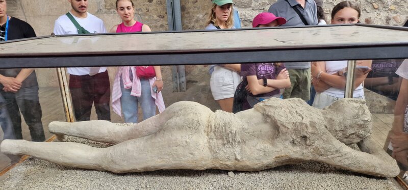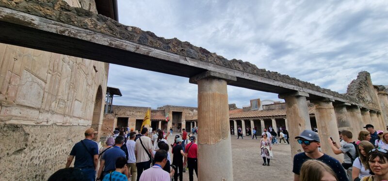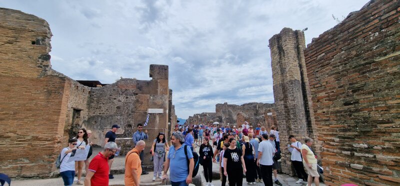 W nedzielę - 02.06.2024r. - przed południem zwiedzaliśmy ruiny starożytnego miasta Pompeje. Zwiedzanie miasta sprzed 2000 lat było czymś niesamowitym. Towarzyszyła nam włoska przewodniczka, która w bardzo ciekawy sposób opowiadała o historii tego miasta. Dowiedzieliśmy się między innymi, że teren Pompejów ozdabiają rzeźby XX-wiecznego polskiego artysty, Igora Miltoraja. Po obiedzie pojechaliśmy pociągiem do Castellammare di Stabia. Kolejką linową wjechaliśmy na górę Faito, skąd rozpościerały się spektakularne widoki na całą Zatokę Neapolitańską. Wieczorem wróciliśmy do restauracji na kolację.