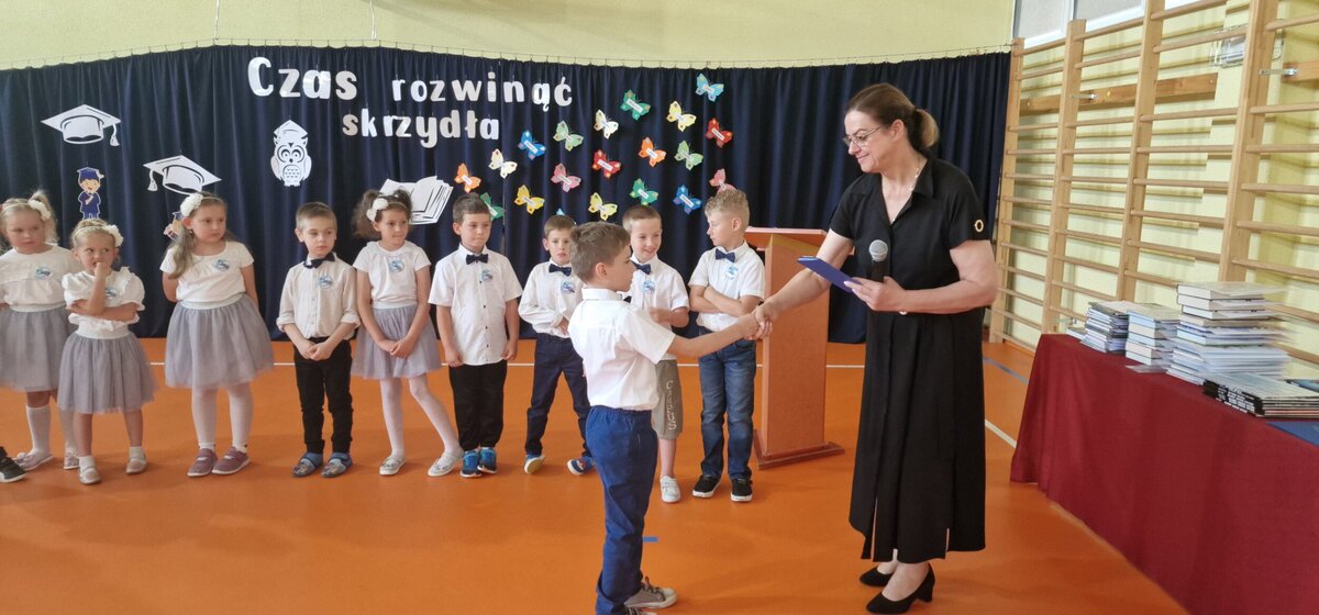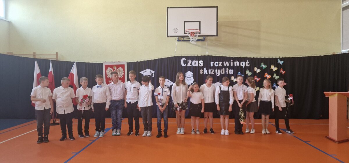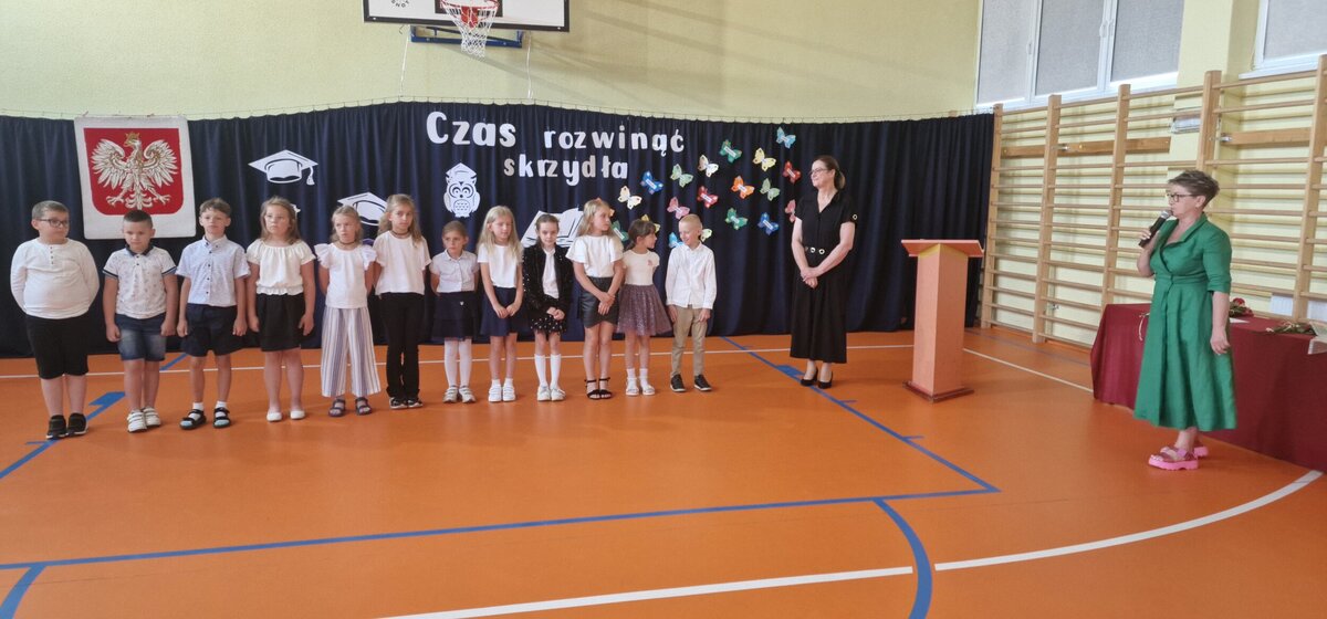 W końcu nadszedł długo wyczekiwany dzień zakończenia roku szkolnego. Dzień ten rozpoczął się od św. odprawionej w kościele przez księdza Marka Ruczaja. Następnie spotkaliśmy się w sali gimnastycznej na uroczystym apelu. Program artystyczny przygotowały przedszkolaki, uczniowie klasy IV i V oraz zespół wokalny "Iskierki". Następnie Dyrektor Zespołu Szkolno-Przedszkolnego, Krystyna Kozera, wręczyła dzieciom kończącym przedszkole dyplomy ukończenia przedszkola. Potem uczniowie wyróżniający się w nauce i w zachowaniu, uczniowie ze 100% frekwencją, najlepsi sportowcy oraz członkinie zespołu "Iskierki" otrzymali zasłużone nagrody. Jak co roku przyznane zostały również Arkusy - dla najlepszego ucznia, którym okazał się Miłosz Ułasewicz oraz dla najlepszego sportowca - Hanii Słaboń. Po zakończeniu apelu uczniowie udali się z wychowawcami do klas, gdzie otrzymali świadectwa ukończenia klasy, życzyli sobie nawzajem udanych wakacji i pożegnali się.